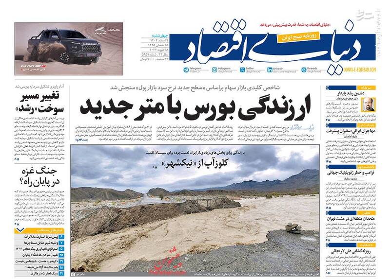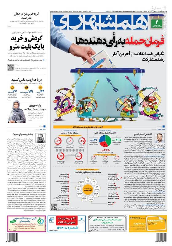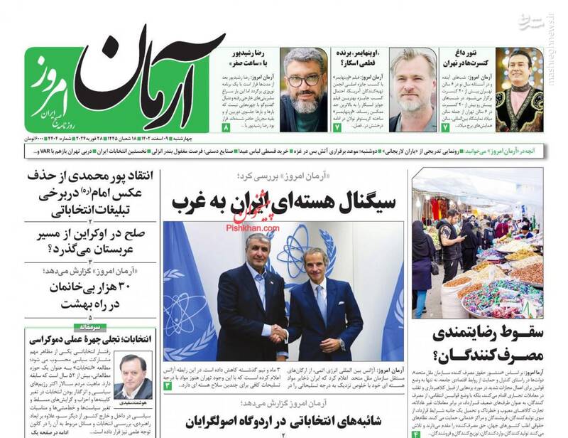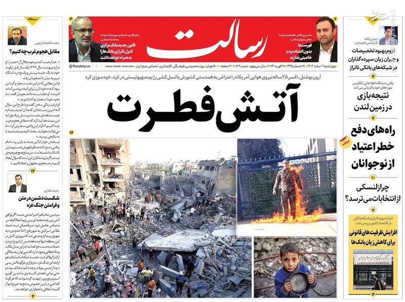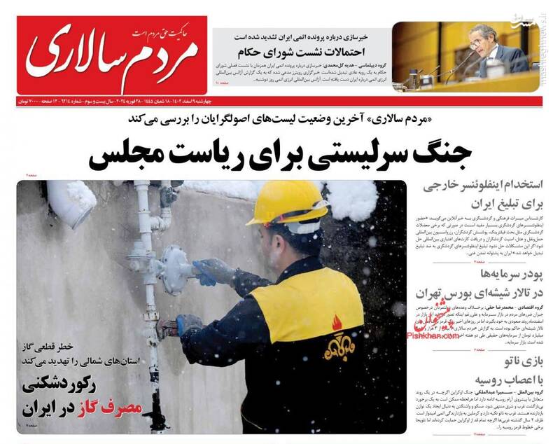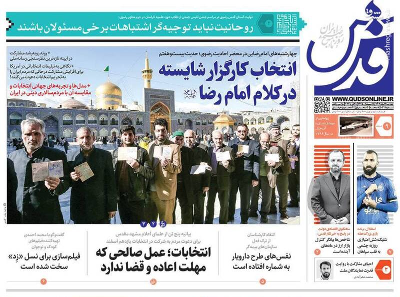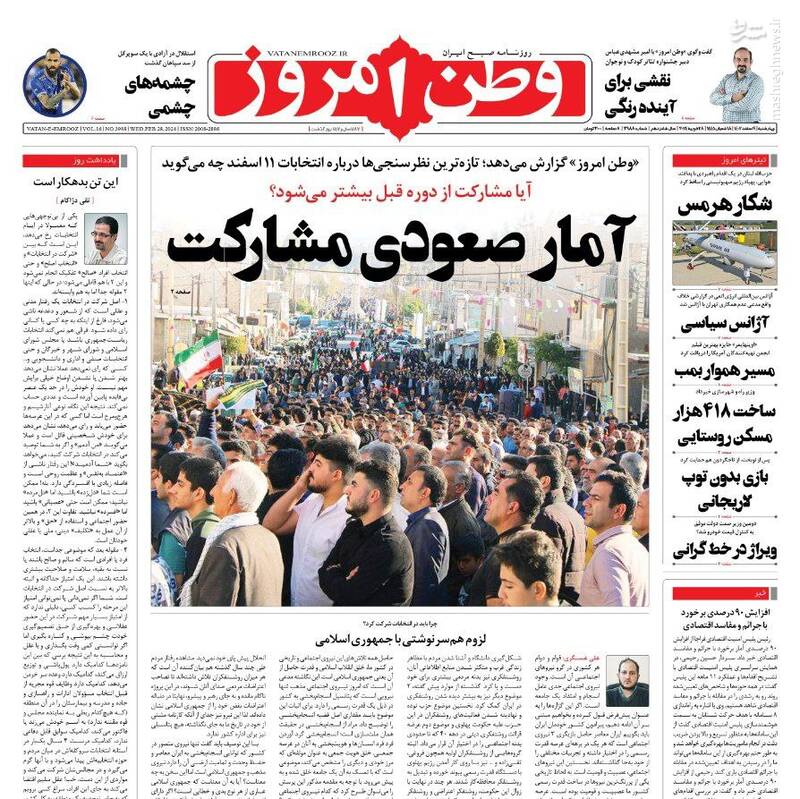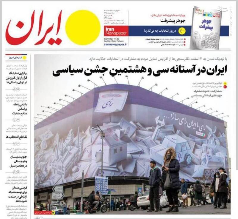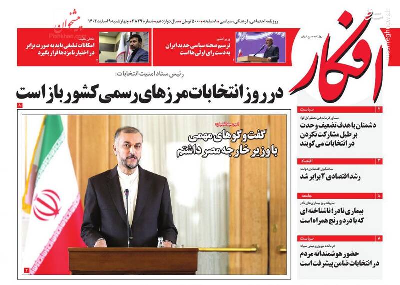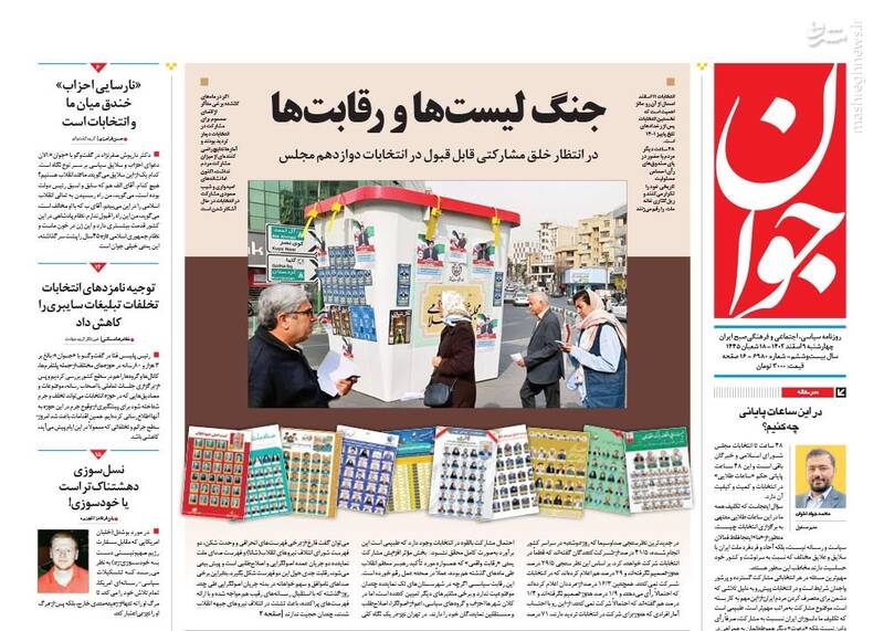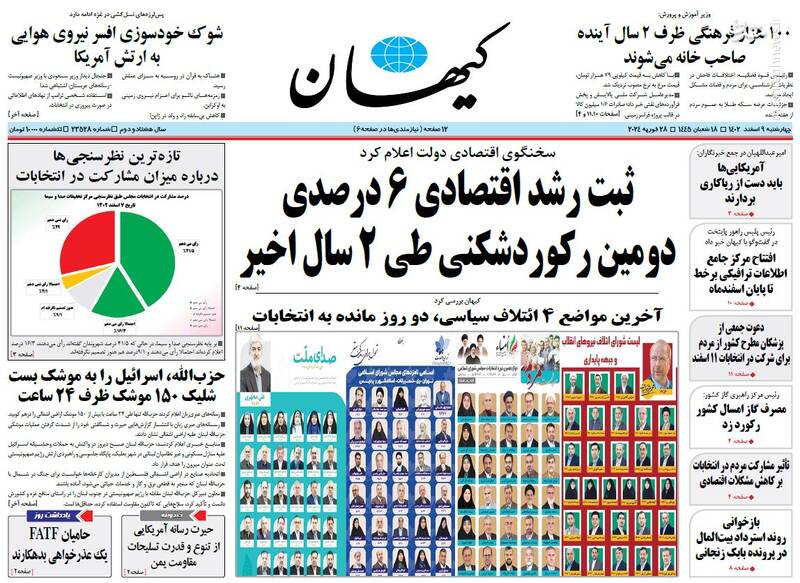 کبنا ؛آمار صعودی مشارکت، ثبت رشد اقتصادی ۶ درصدی دومین رکوردشکنی طی ۲ سال اخیر، جنگ لیست‌ها و رقابت‌ها، آتــش فطــرت، تیتر برخی از روزنامه‌های صبح چهارشنبه ۹ اسفند ۱۴۰۲ است.