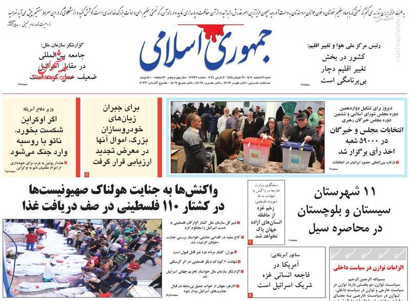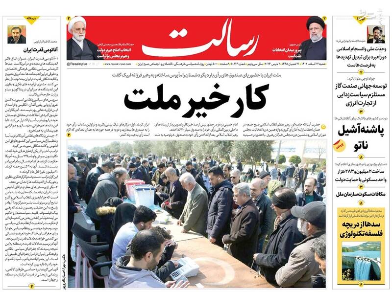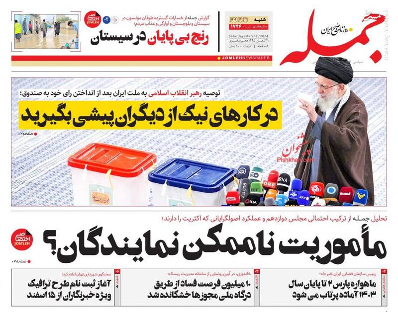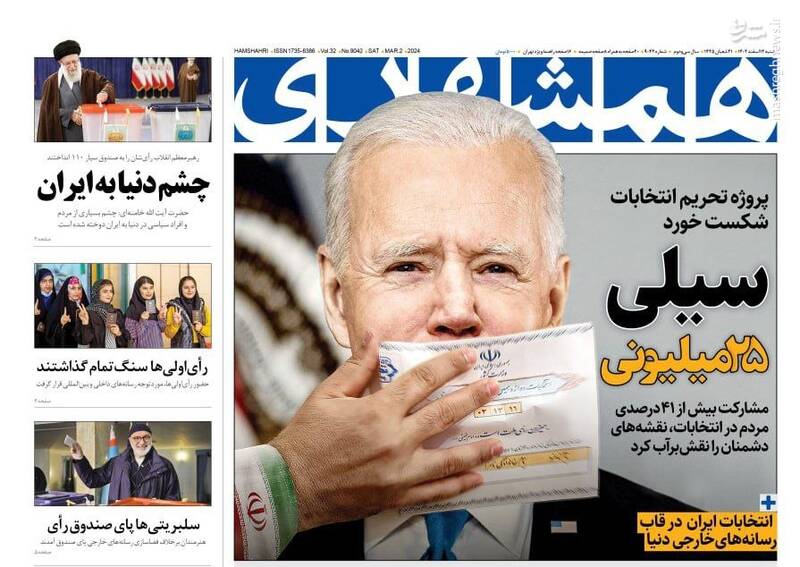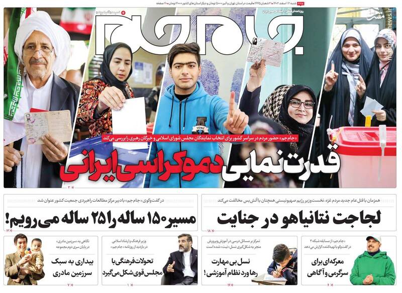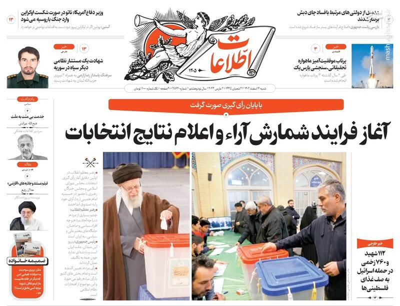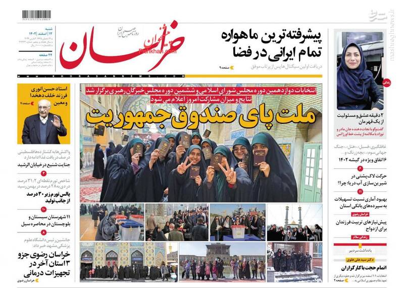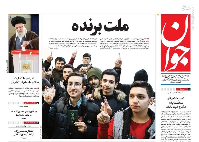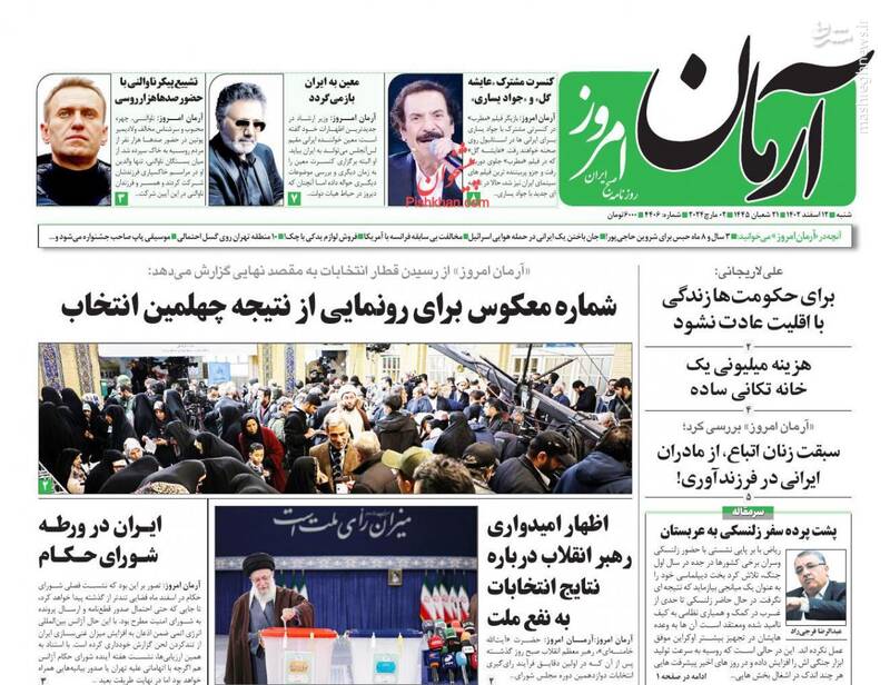 کبنا ؛ملت برنده، مردم در سراسر کشور دوستان را خوشحال و بدخواهان را ناامید کردند، کار خیر ملت، سنگ تمام مردم، تیتر برخی از روزنامههای صبح شنبه ۱۲ اسفند ۱۴۰۲ است.