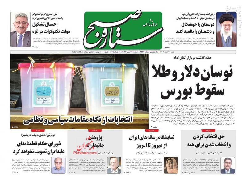 عکس/ صفحه نخست روزنامه های شنبه ۱۲ اسفند