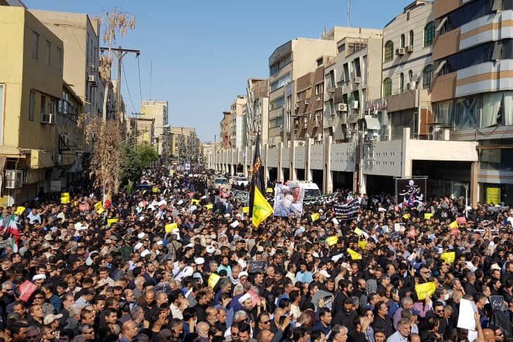 حضور پرشور و باشکوه مردم خوزستان از همه قومیت ها در کنار هم در مراسم تشییع پیکر شهدای حادثه تروریستی اهواز و شعار علیه استکبار و ارتجاع پیام روشنی از اهواز پایتخت دفاع مقدس ایران، به قلب ارتجاع منطقه مخابره کرد.